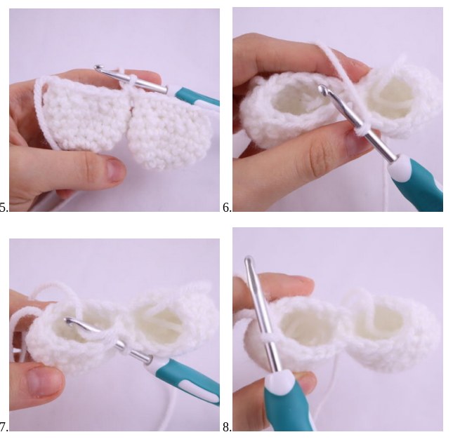 Machen Sie weiter mit dem zweiten Kreis und machen Sie eine feste Masche in die letzten 6 M (Bild 6-8) (24)