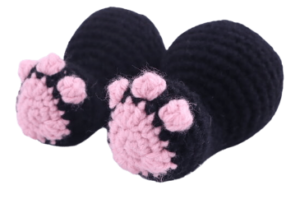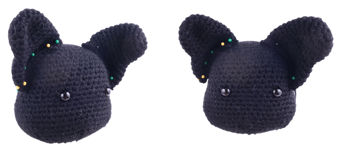 Nähen Sie das Ohr von der nächsten Masche am Kopf bis zur nächsten Masche am Ohr an. Wiederholen Sie diesen Vorgang, bis das Ohr vollständig angenäht ist. Vernähen Sie die Enden.