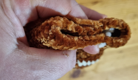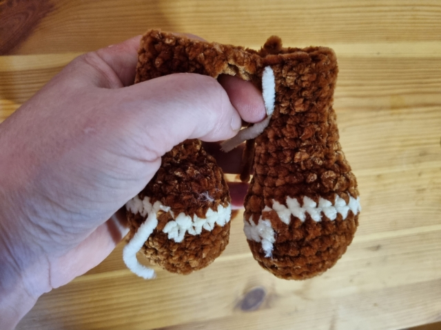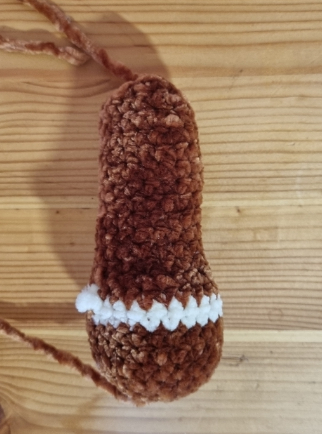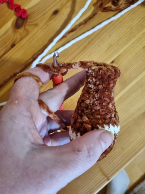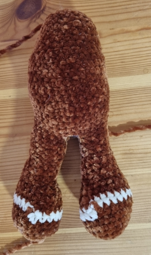 Das 2. Bein genauso arbeiten, aber den Faden nicht abschneiden. Es werden die Beine mit 3 LM verbunden